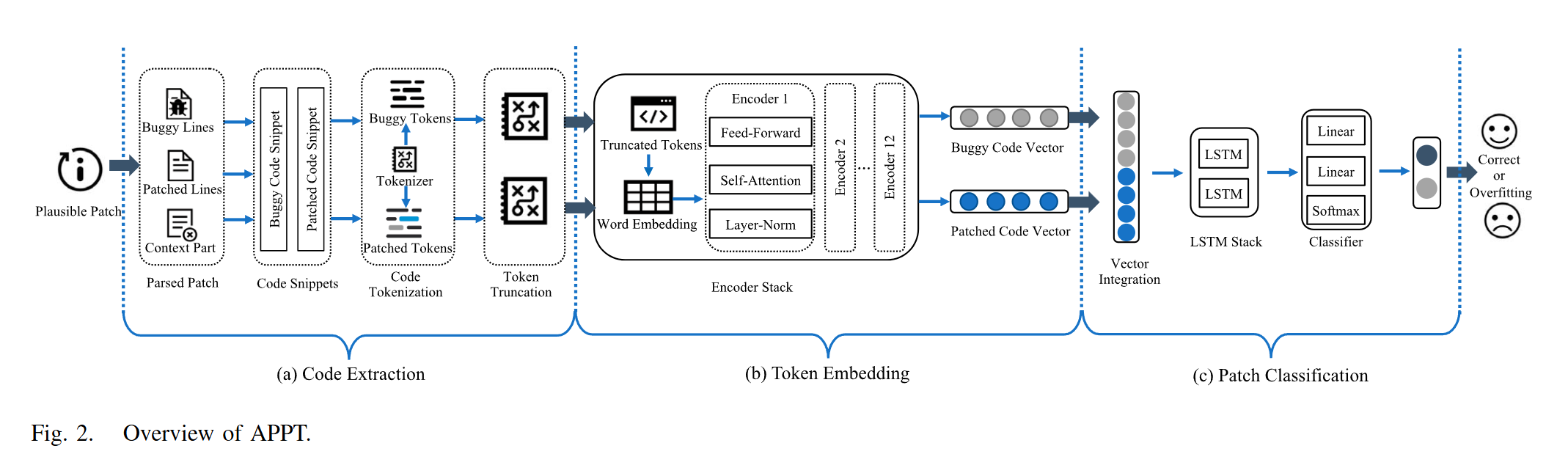 这一流程涵盖了APR整个的完整流程,即预处理-修复-后处理过程,预处理聚焦于代码等LLM输入数据的处理,后处理聚焦于生成代码的质量打分。