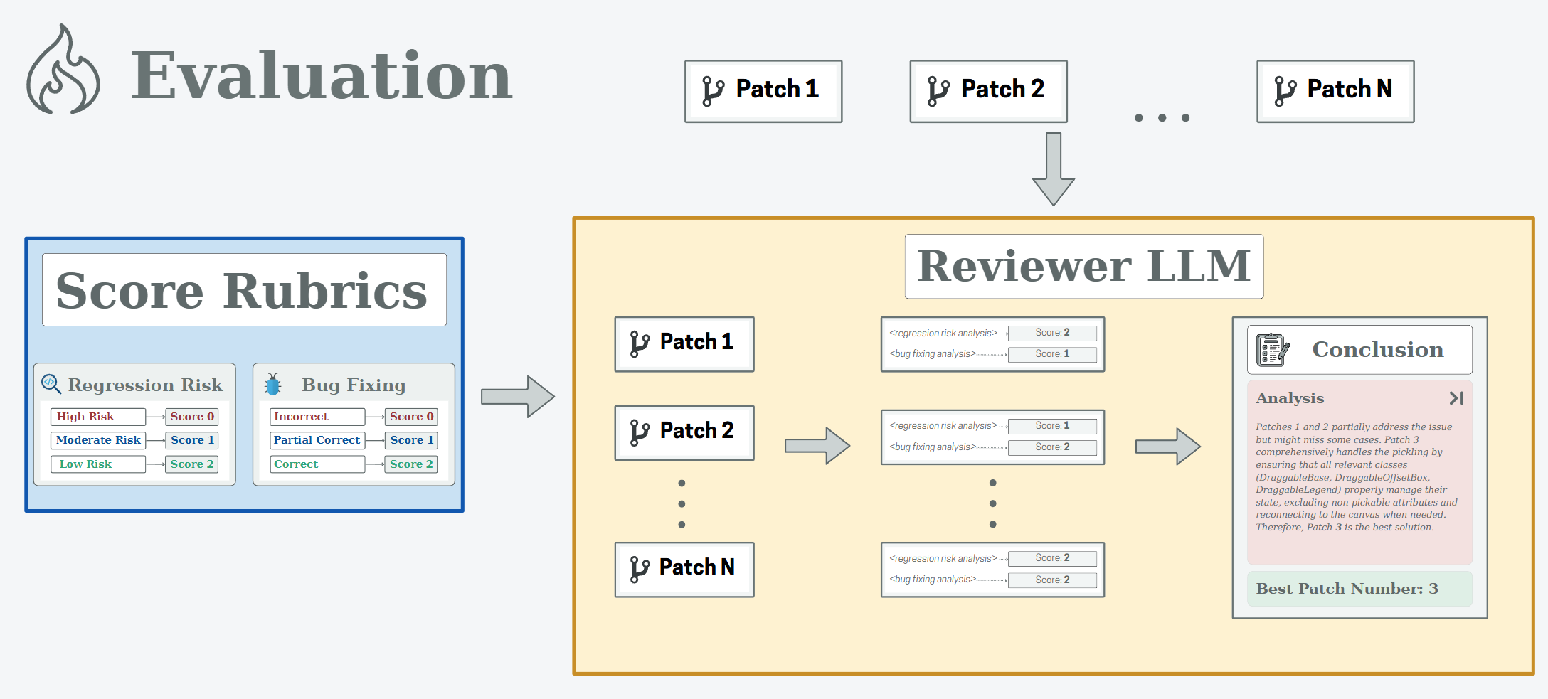 Patch Sampling。针对某个给定问题,我们基于DARS为该问题生成的补丁数量分布,对所有2至6个补丁的组合进行采样。为了构建平衡数据集,我们进一步对负面补丁进行细粒度采样——根据应用补丁后导致失败的测试用例组合,将所有负面补丁划分为不同组别。对于正面补丁,若存在则从所有正面补丁集合中采样;若不存在正面补丁,则直接使用基准真实补丁。